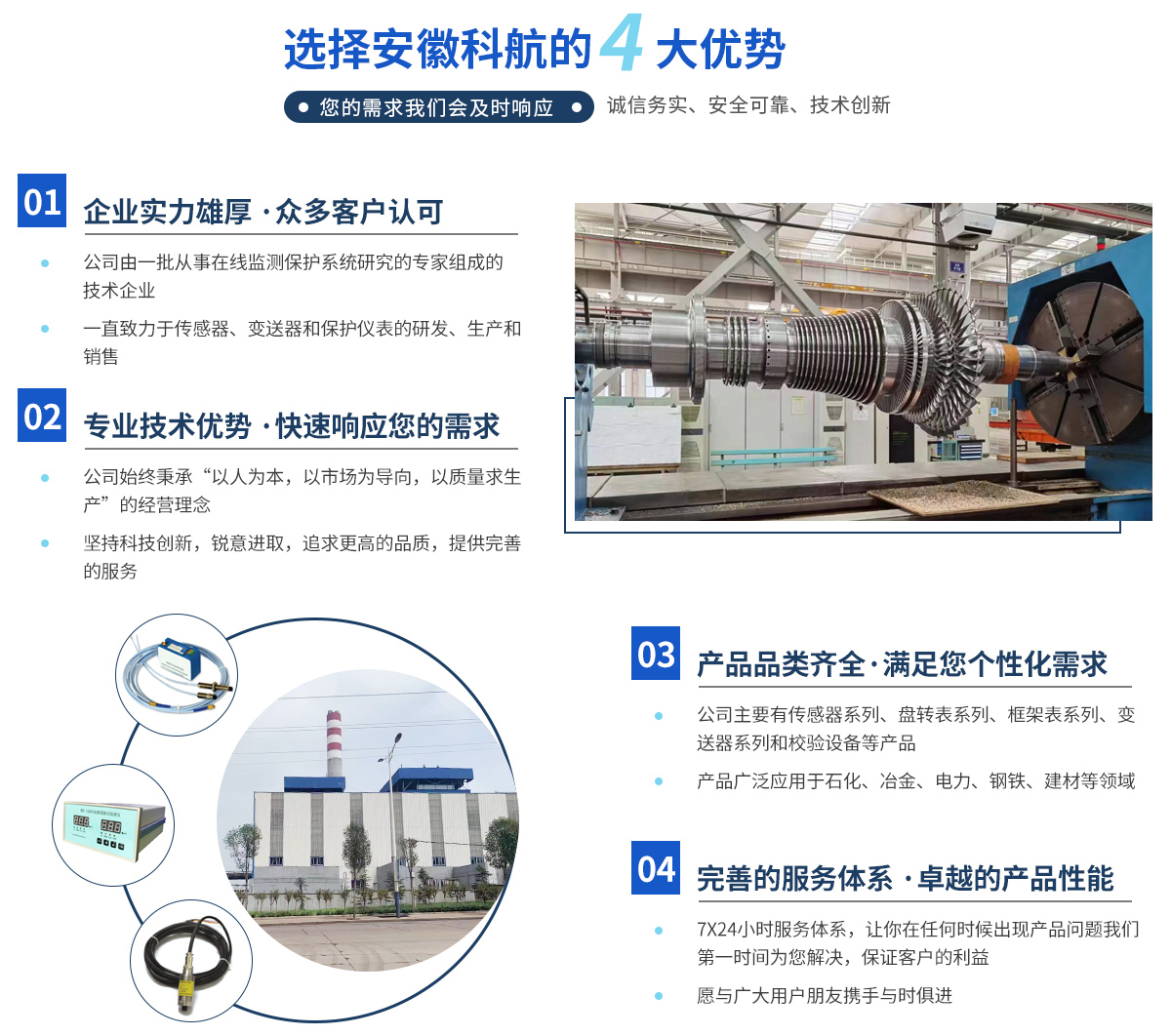 安徽科航儀器儀表有限公司由一批從事在線監測保護系統研究的專家組成的技術企業。自成立以來,一直致力于傳感器、變送器和保護儀表的研發、生產和銷售。產品廣泛應用于石化、冶金、電力、鋼鐵、建材等領域,是汽輪機組、水輪機組、壓縮機、制氧機、鼓風機、水泵等大型機械不可缺少的在線監測保護設備。公司主要有傳感器系列、盤轉表系列、框架表系列、變送器系列和校驗設備等產品。 公司始終秉承“以人為本,以市場為導向,以質量...